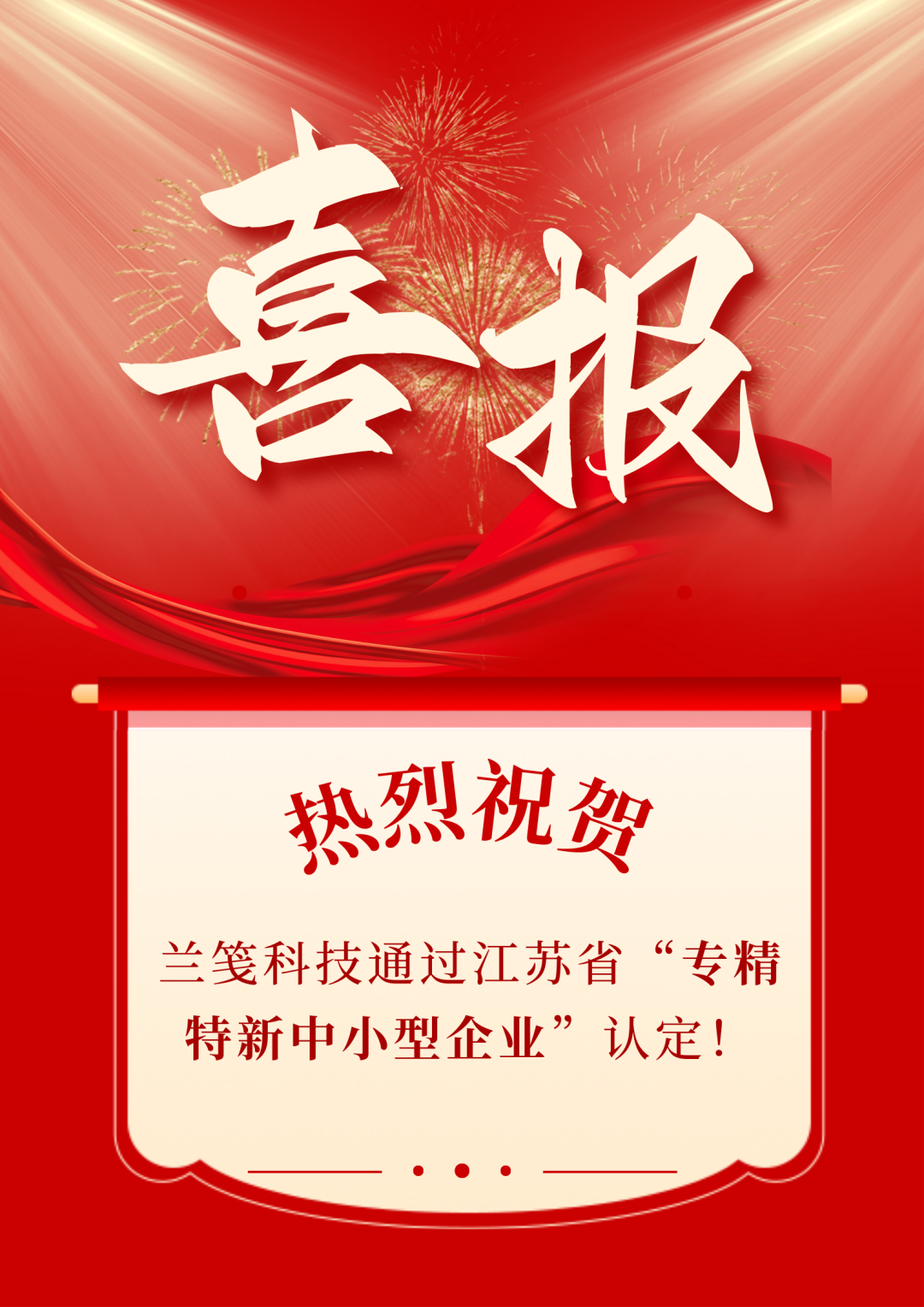 喜報(bào)!熱烈祝賀蘭箋科技榮登江蘇省2024年度專精特新中小企業(yè)(第一批)名單